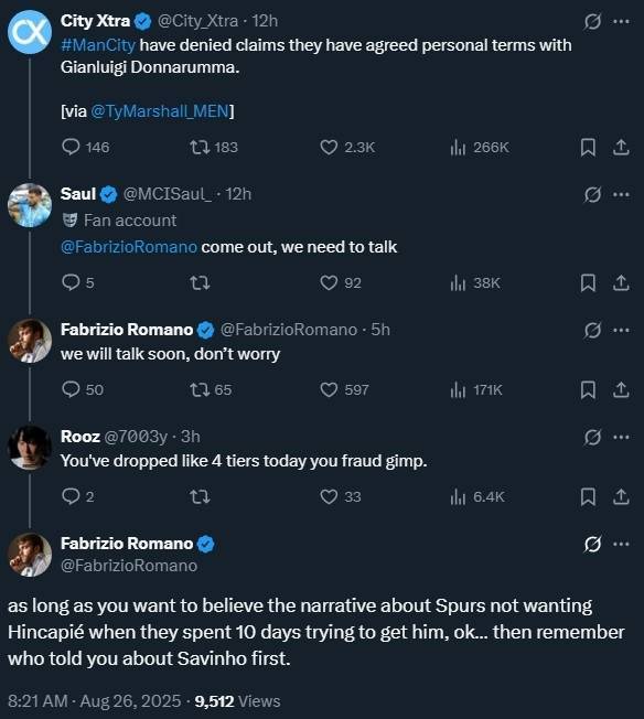 直播吧8月26日讯 名记罗马诺今天在推特发文,回应球迷质疑。