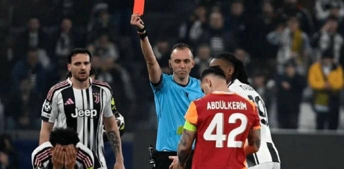 两队首回合较量中,尤文在客场遭遇惨败,形势十分严峻。但回到主场,斑马军团没有放弃希望,第36分钟,图拉姆制造点球,洛卡特利稳稳罚入,为尤文打破僵局,以1-0领先。下半场第49分钟,尤文后卫凯利与对方球员伊尔马兹争顶时发生踩踏动作,裁判最初出示黄牌,随后通过VAR监控改判为直接红牌将其罚下。慢镜头显示,凯利是在跃起争顶时被对手推搡,导致落地失衡无意踩到伊尔马兹,但裁判依然认定是恶意犯规并做出严厉处罚。这样的判罚标准和力度,引发不少媒体和球迷质疑。